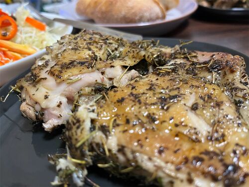 id:hitode909です。クリスマスなので鶏をスパイスで炒めます。 鶏肉はハーブソルトとマスタードをまぶして焼いておく。 そのあいだにたまねぎとししとうを切ります。カレー粉、チリパウダー、トマトペースト、など、調味料も用意しておく。最近カレーを作る…