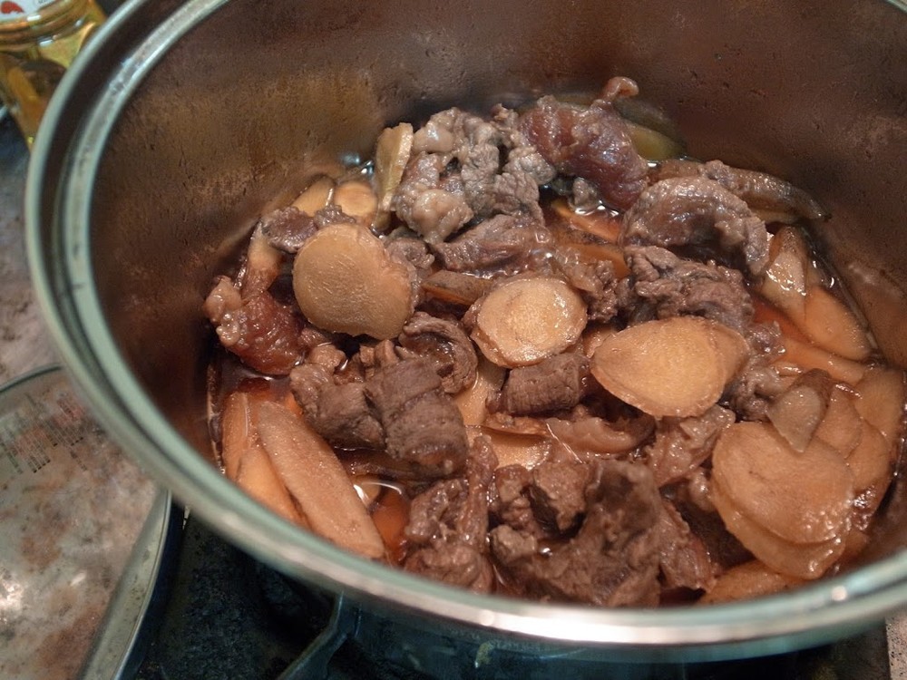 はい。 本当は牛の薄切り肉を使うっぽいのですが、スーパーで薄切り肉置いてないなーって思っていたら牛すじが目に飛び込んできて、これまで牛すじ料理したこと無いし煮物だし安いしええやろという雑な考えで牛すじを煮込みました。あと生姜も先週の煮付けにつかったあまりなので足りてない気がする。