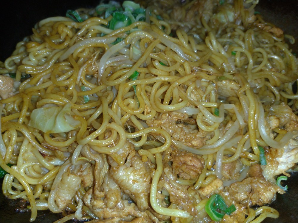 カット野菜と豚こまを焼きそば(3人前)にぶちこんで完成です。 ネギが冷凍庫で余ってたので処分したいしかけときました。 感想としては、さっさとつくれて1つの器で炭水化物、タンパク質が摂取でき、味も悪くはないのですばらしい食べ物と言える。気まぐれにネギも入れてよかった。パスタよりもこっちのほうが良いと思う。
