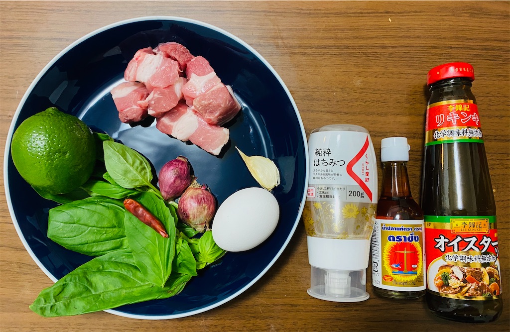 今日は現地の屋台で食べた、豚肉とバジルと卵が入り混じった何かの再現チャレンジします。