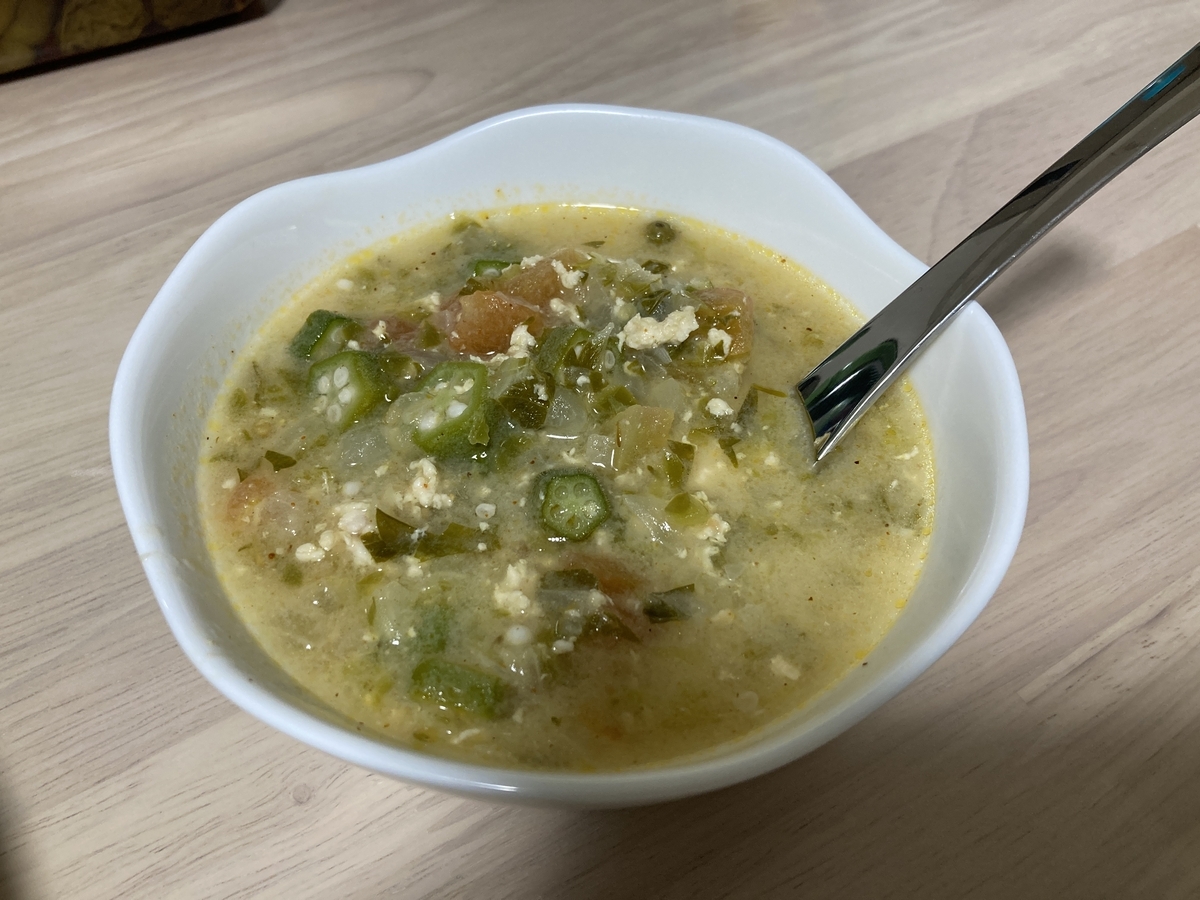 付け合せはガンボスープ. こっちも適当に見つけたレシピで作ったのだけど, 正直ガンボスープ食べたことないのでこれが正解なのか...? わからない... 何も... でも美味しかったのでヨシとします.