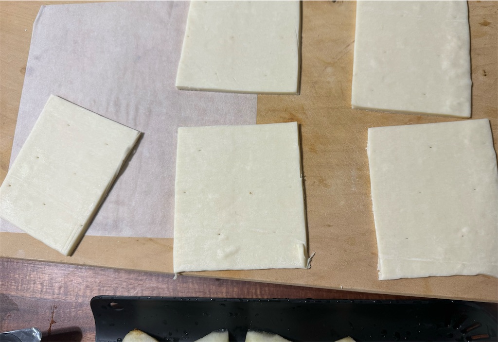 パイシートを伸ばしてこちらも6等分。だいたい正方形になれば良いです。
