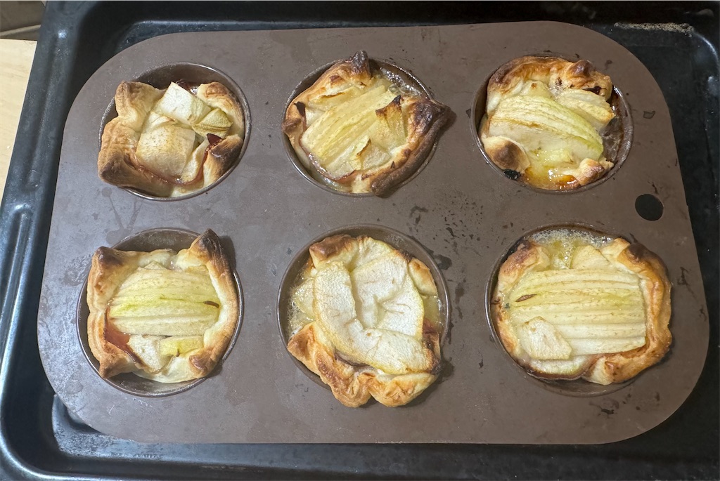 こういう感じで、パイシートとマフィン型があれば適当になんか入れて焼くと見栄えのするものができます。アップルパイならりんごだけでOKです。焼き立てにアイスクリームとか添えると最高。