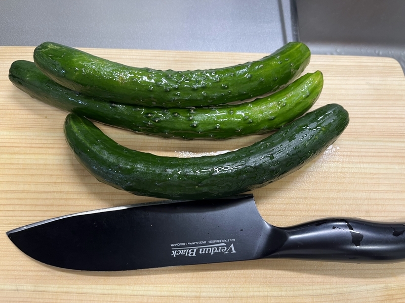 というか蛇腹切りってきゅうり真っ直ぐのほうが切りやすいですよね。